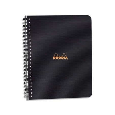 RHODIA Cahier spirale couverture polypropylène noire 16 x 21 cm 160 pages lignée 6 mm perforées 4 trous