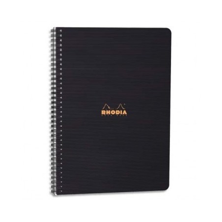 RHODIA Cahier spirale couverture polypropylène noire 22,5 x 29,7 cm 160 pages 5x5 perforées 4 trous