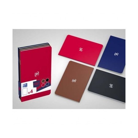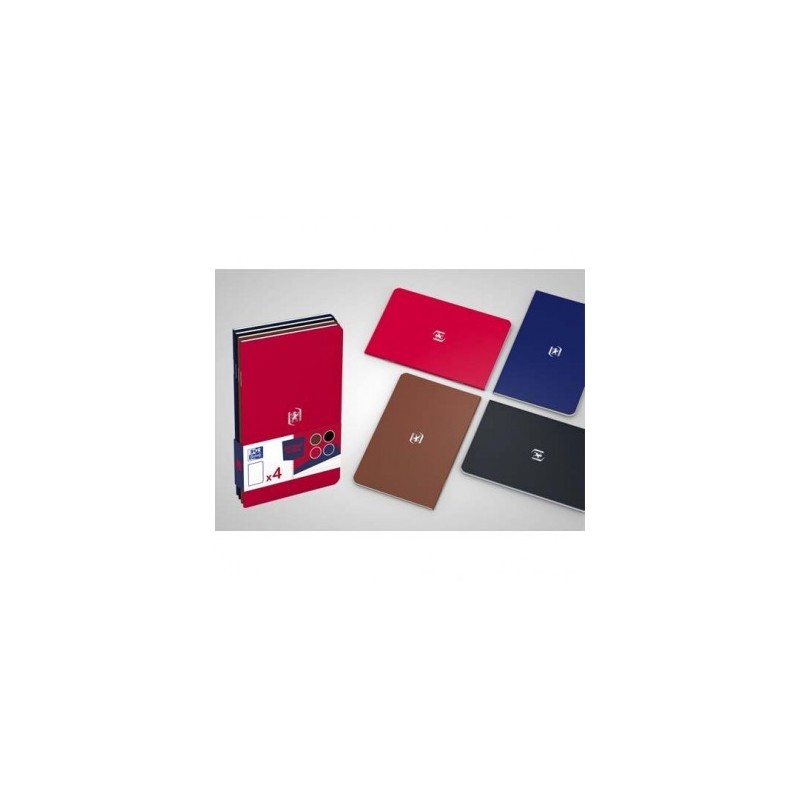 OXFORD Lot de 4 carnets POCKET NOTES agrafé 9 x 14 cm 48 pages ligné 6 mm. Couvertures cartes assorties Classique