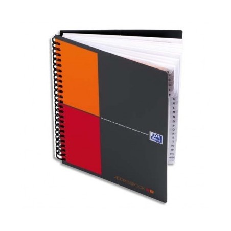 OXFORD Cahier ADRESSBOOK spirales 144 pages 80g réglure bi-colore 17 x 21cm Couverture polypropylene gris