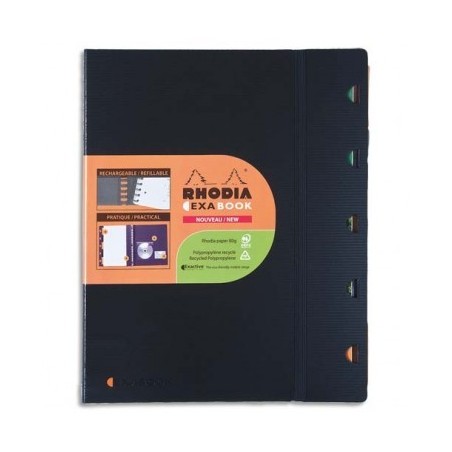 RHODIA Cahier rechargeable EXABOOK spirale 160 pages 90g 5x5 22,5 x 29,7cm Couverture polypropylène noire