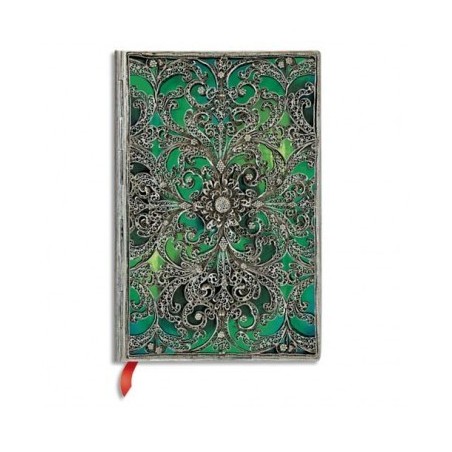 PAPERBLANKS Carnet Filigrane Argenté Esmeralda Mini 9,5 x 14 cm 208 pages unies, fermeture par élastique