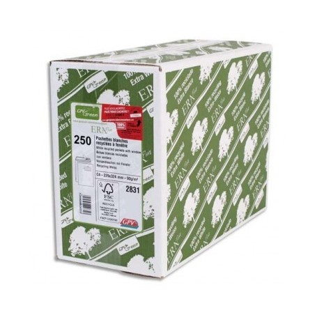 GPV Boîte de 250 pochettes recyclées extra blanches Erapure, formatC4 229 x 324 mm fenêre 50 x 100 mm 90g