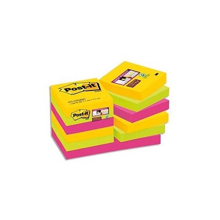 POST-IT Lot de 12 blocs Super Sticky Rio 90 feuilles 4,76 x 4,76 mm - Coloris assortis